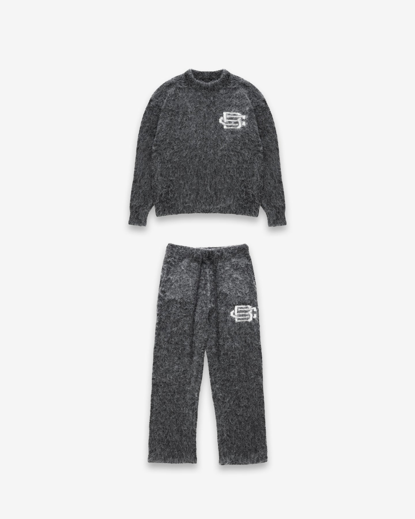 The ultimate blend of comfort and style. The BC Set features our premium mohair-blend jumper and jogger, designed for a relaxed yet elevated look. Finished in a clean charcoal tone with our signature BC logo detailing throughout.